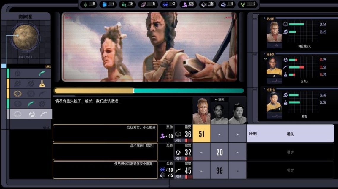 也就是说,在游戏中,电视剧的各种经典角色不再是只供玩家招募派遣的背景板NPC,玩家接收新船员的流程基本是按照电视剧顺序来的。而除了兼顾飞船修复与资源管理玩法之外,你还需要在一个又一个主线任务之中体验电视剧里那些凶险的故事和精彩的冒险。