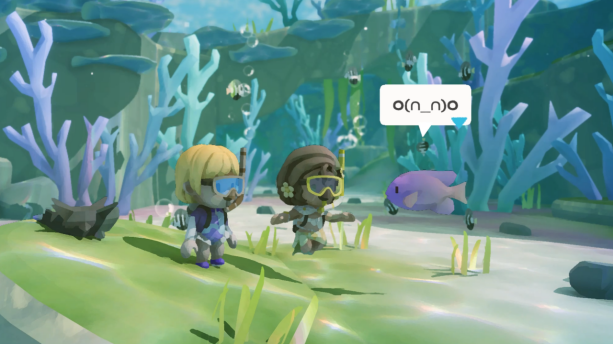 除了水下邂逅之外,玩家还将和多位特点鲜明的角色亲密互动并建立深厚的友谊。不只是一同潜入海底,塔塔还将和他们交换贴纸,举办篝火晚会,在玫瑰色的天空下一起摇摆。