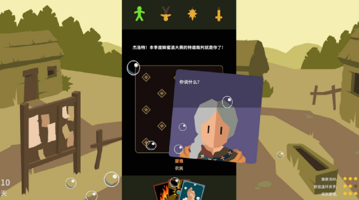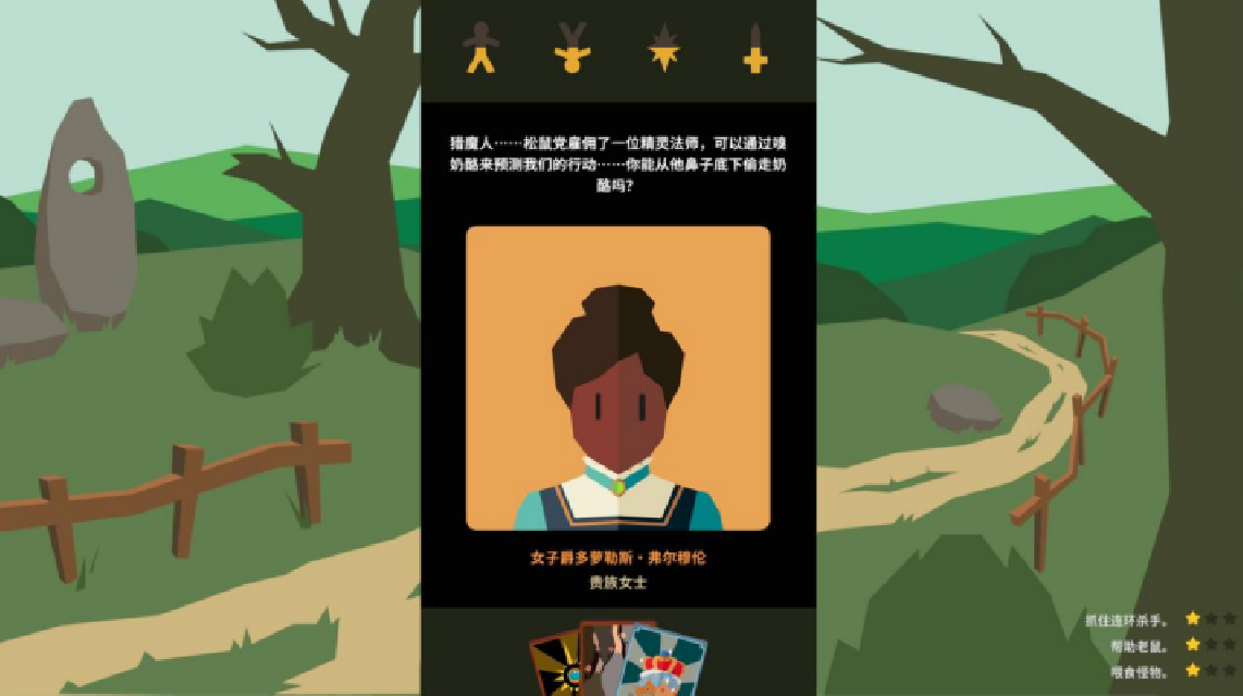 对于丹德里恩来说,更高的等级则意味着更便利的开局抽卡以及每局游戏之间穿插的各种小事件小游戏解锁。比如提升到一定等级之后,你可以解锁为贵族讲述“定制故事”的小任务,而在这里你则需要根据雇主的故事要求选择特定的设定卡片来完成任务,不仅难度比本体低,乐趣也比本体高。