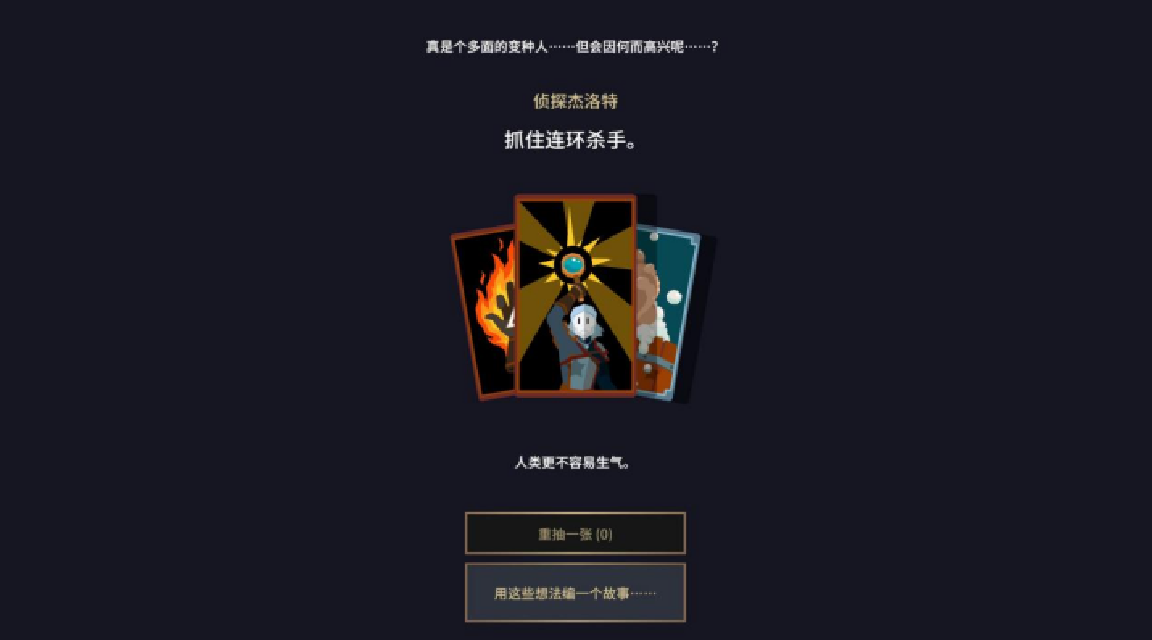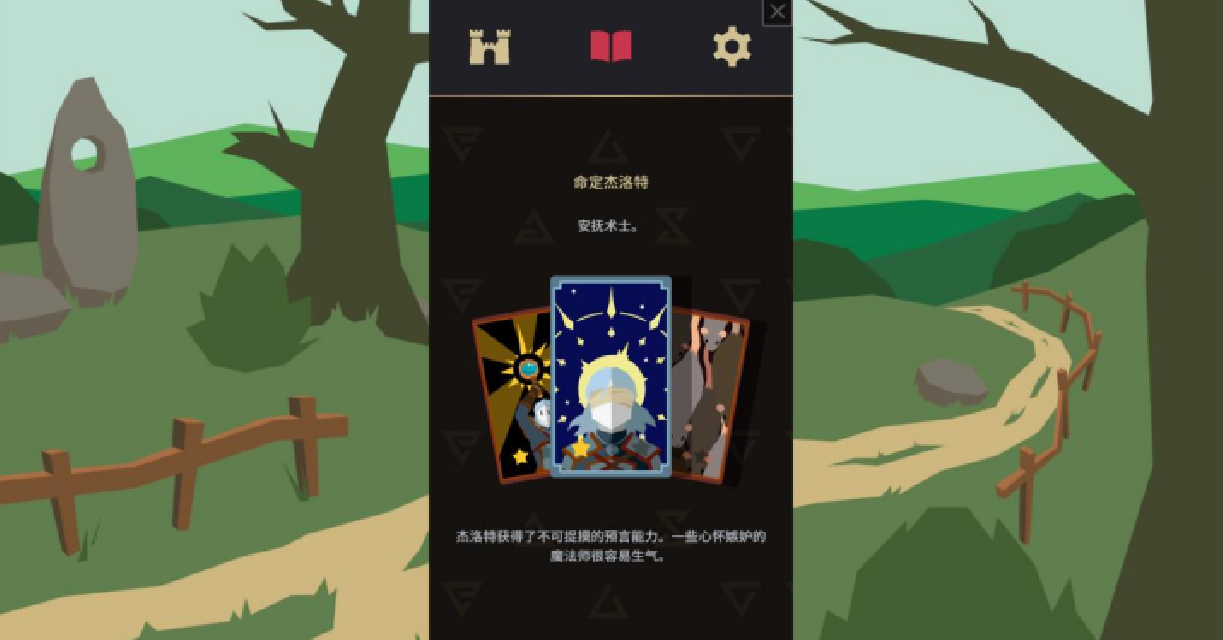 比如你可能在游戏中抽取到“凡人杰洛特”,那在故事中,杰洛特“猎魔人”的种族身份会变成凡人,同时增加人类角色对杰洛特的亲和度——不过因为《王权》的所谓“故事”本来就没有什么文本量,所以这个设定换句话说就是可以在某些选项中影响玩家获得的点数。