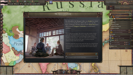 The Great Wave:这款以海军为主题的扩展包允许玩家随心所欲地设计舰船、为舰队定制享有盛誉的旗舰、向他国购买舰船,并将海军作为外交博弈中的筹码。该扩展包还将包含聚焦于日本快速的政治、工业和社会变革的历史内容。
