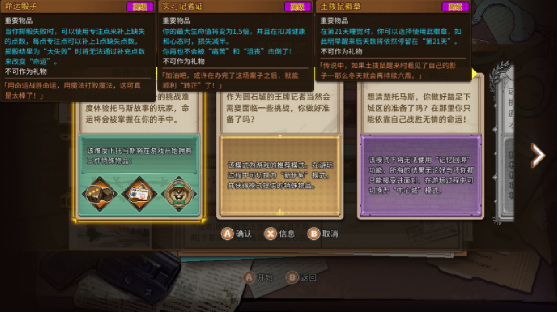 不过在正式版中官方已经加了许多人性化的设计,像游戏的最低难度直接就给了玩家几个堪称bug的道具,并且还能随时sl来确保一些看脸的事件能稳稳通过检定。