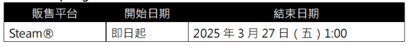 本次活动为黑暗战国动作 RPG「仁王」系列最新作『仁王3』,举办余 Steam 平台的首度特惠活动。特惠期间内,『仁王3』一般版享有 9 折的优惠价格。 此外,包含『浪人崛起』、『无双深渊』以及『红色的炼金术士和白色的守护者 ~蕾斯莱莉娅娜的炼金工房~』等多款人气作品也同步加入特惠行列,玩家可 以用超值的价格购入。敬请把握此次购买机会。