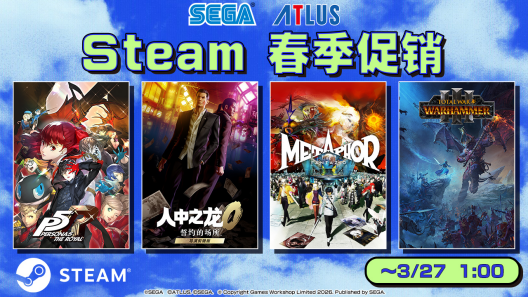 世嘉多款在售佳作加入Steam春季促销活动,推出超划算限时优惠。活动即日开始持续至3月26日,机会难得,不要错过!