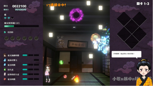 仅就玩法而言,《妖怪之家》非常简单:玩家操控少女小歌在躲避各种陷阱的同时,偷空为飞行的鬼火调整释放轨迹进行弹射,击败BOSS或者消除关卡中的“黑洞”即可过关。