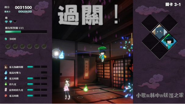 游戏设计了剧情和街机两个主要模式,关卡完全相同,不过玩家需要剧情模式来解锁各种“妖怪”伙伴,而街机模式中,已经解锁的伙伴可以直接使用。