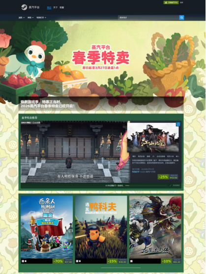 即刻访问蒸汽平台(Steam中国)春季特卖活动页面,用最实惠的价格将心仪的游戏统统塞入库存,让高性价比的游戏为您的春季增添无限乐趣!