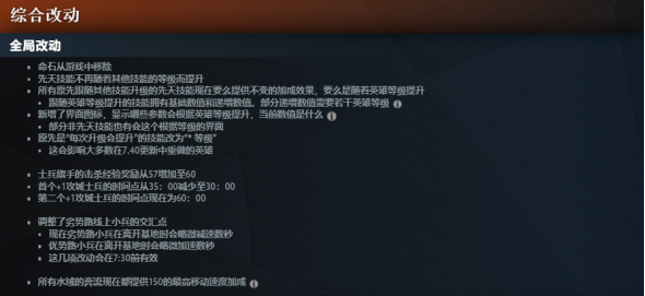 与此同时,先天技能不再随着其他技能的等级而提升,所有原先跟随其他技能升级的先天技能现在要么提供不变的加成效果,要么是随着英雄等级提升。