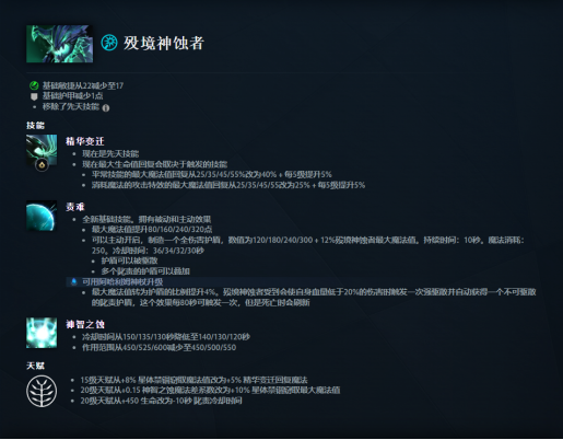 殁境神蚀者的精华变迁成为了先天技能,并获得了全新基础技能责难,责难可以主动开启,制造一个全伤害护盾。