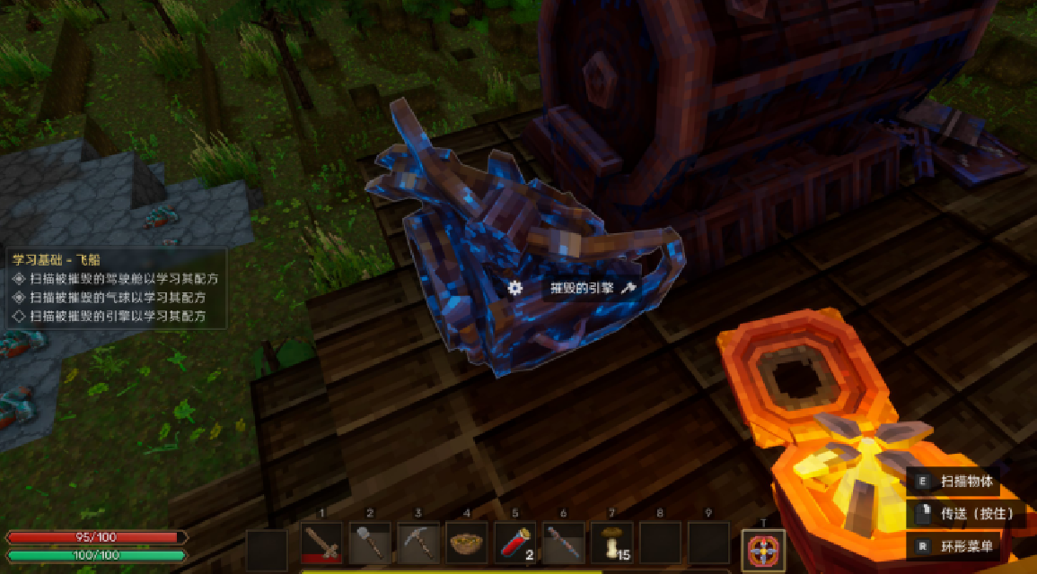任务会有简单的新手教程,然后就指引玩家前往一个飞船废弃点,扫描和拾取飞船核心的几个零件,再一番资源搜集后制作出对应的零件,就可以激活废弃的飞船,建设起自身飞艇基地的雏形。