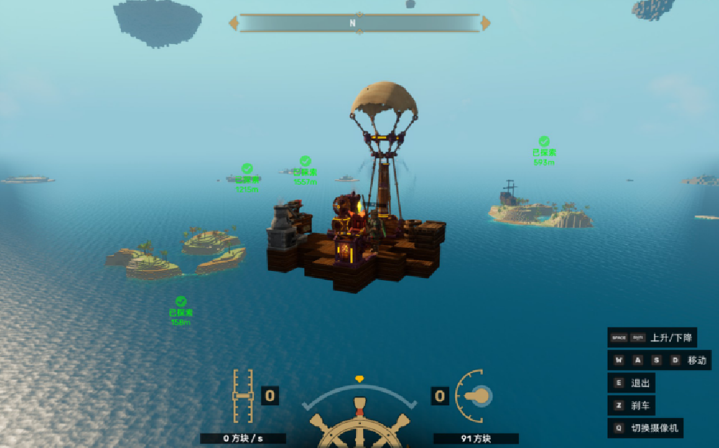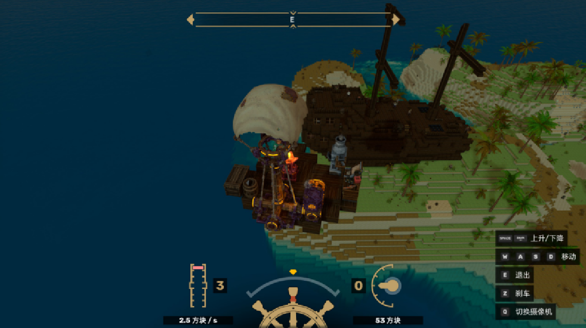 飞船是玩家的重生点、储物中心,随着尺寸的加大,很多设施需要搬到飞船上,形成一个可移动的基地。玩家可以在船上进行高自由度的建造,后期建成空中别墅、战斗堡垒等都是可以的。