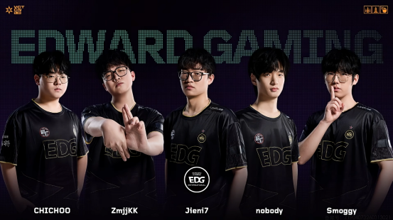 EDG:ZmjjKK(幻棱)、nobody(斯凯)、Jieni7(霓虹)、CHICHOO(零)、Smoggy(炼狱)
