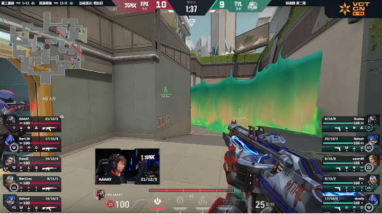 本场比赛,FPX选手AAAAY发挥最为亮眼,在图二深海明珠贡献纯净瞄准四杀,多次在关键回合击穿TYL防线,成为队伍扳平比分的关键先生。Setrod、BerLIN和Ben1Ley同样稳定发挥,FPX全队上下展现出良好的化学反应。TYL方面,Erv在图一贡献多次关键三杀和残局处理,slowly达成VCT CN千杀里程碑的同时也有稳定输出,Scales的蝰蛇在防守端屡建奇功,但整体在决胜图中未能延续前两图的节奏,遗憾吞下赛季首败。