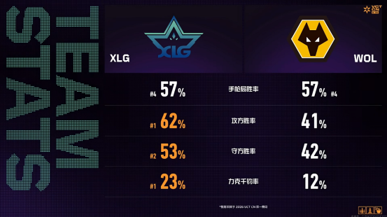 本场比赛,XLG选手Lysoar发挥最为亮眼,在图三莲华古城贡献多次关键三杀,成为XLG翻盘取胜的关键先生。rarga在图二的飞将神准帮助队伍扳平比分,happywei在决胜图持续贡献稳定输出。WOL方面,SiuFatBB在图一斩获五杀,yosemite和Spring均有高光表现,在已确定出局的情况下打出了赛季最精彩的一战,虽败犹荣。本场取胜后,XLG以5胜2负的大场战绩结束常规赛征程,成功锁定OMEGA组第二名的季后赛排位。而WOL则在五连败后以0胜7负的战绩垫底收官,结束了2026 VCT CN第一赛段的全部征程。