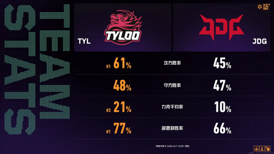 2026无畏契约VCTCN第一赛段常规赛火热进行中,12支国内顶尖战队集结杭城,将在为期三周的组内单循环赛中展开激烈角逐,争夺季后赛晋级名额。今日ALPHA组焦点对决由TYL迎战JDG,最终JDG以2:0的大比分力克对手,在这场“赢或回家”的生死战中笑到最后,搭上了通往季后赛的末班车!本篇为您带来本场比赛的详细战报。
