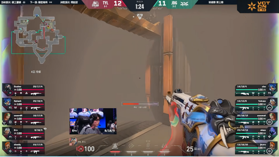 上半场最后一回合,Yuicaw三杀收尾,JDG以9-3大比分领先。