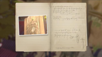 封面破旧、写着神秘文字的古老笔记本。通过记录拍摄的照片以及与神灵交流所获得的信息,真相将逐渐浮现。这或许就是了解亡土真面目的关键所在。