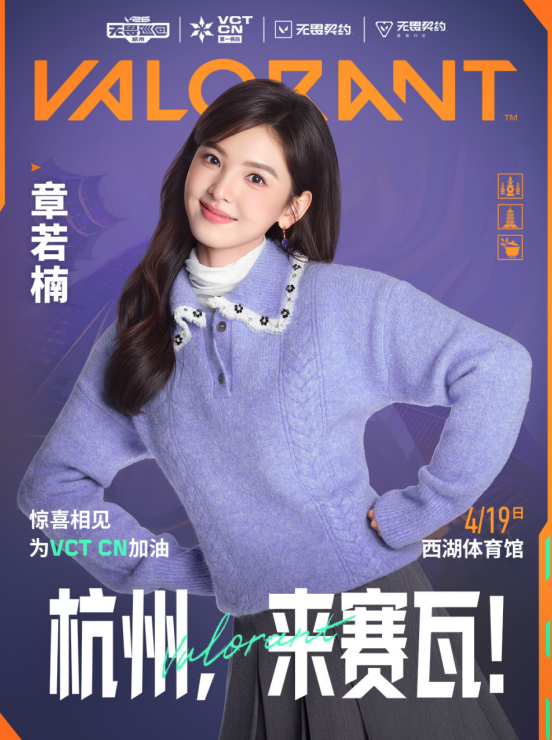 此外值得一提的是,同样喜爱无畏契约的“瓦学姐”章若楠还将于4月19日,惊喜现身无畏巡回杭州站-西湖体育馆,与观众一起在现场为VCT CN加油!