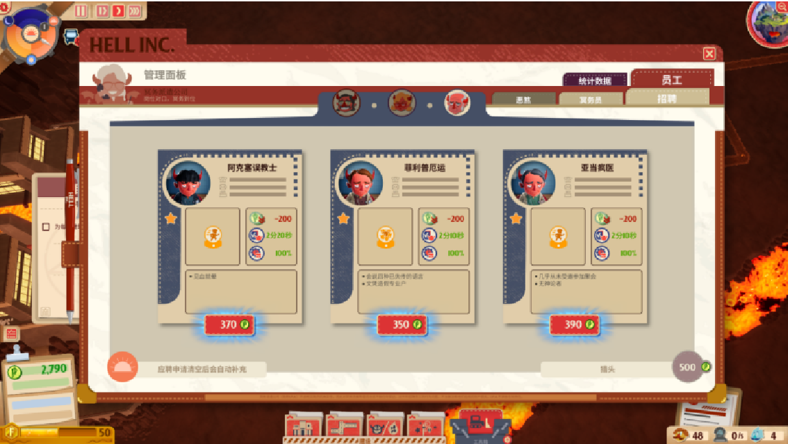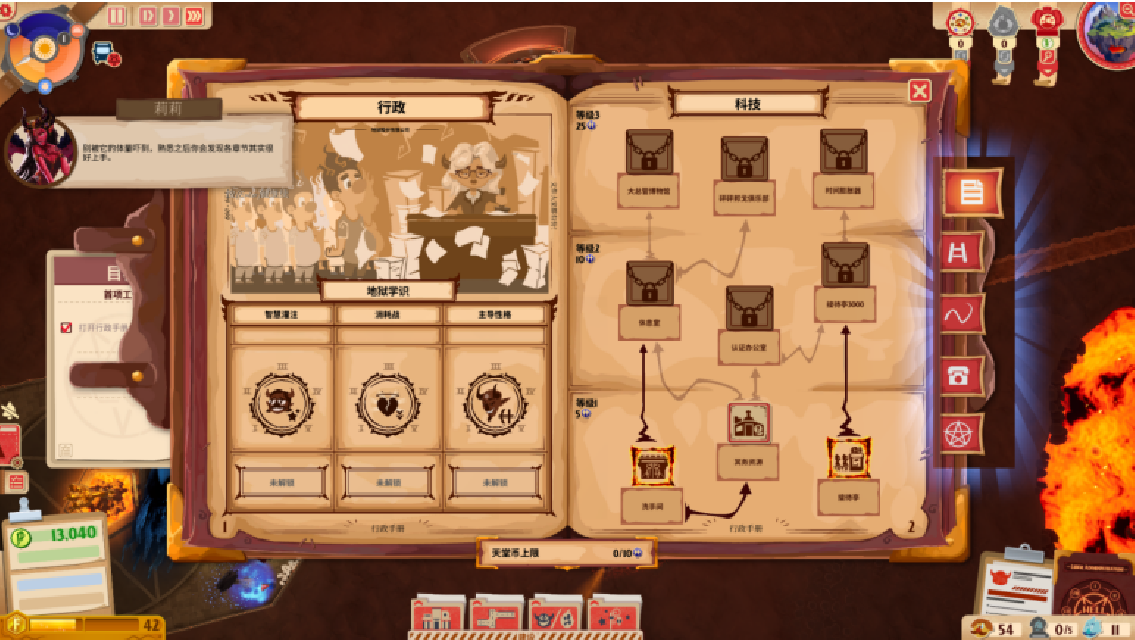 当然,这游戏也不是完全没问题,最大的问题还是前期容错偏低,有时候一个环节没处理好,后面就容易滚成一连串的负反馈,资金、效率、员工状态全都一起出问题。那种“大厦将倾”的感觉不一定算坏事,毕竟它本来就是偏策略管理的游戏,但在刚脱离教程的时候,压力确实来得有点大。还有就是优化目前看也不能算特别稳,规模一大起来,卡顿和性能问题多少还是会影响体验。再加上人间玩法虽然思路不错,但和地狱部分相比还是稍微浅了一点,更多是辅助和充实游玩内容的作用,暂时还没有强到能和地狱部分平分秋色。