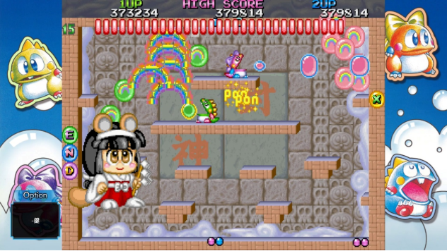 发射泡泡攻击打倒敌人、踩著泡泡当跳板前进,一边收集宝物吧!