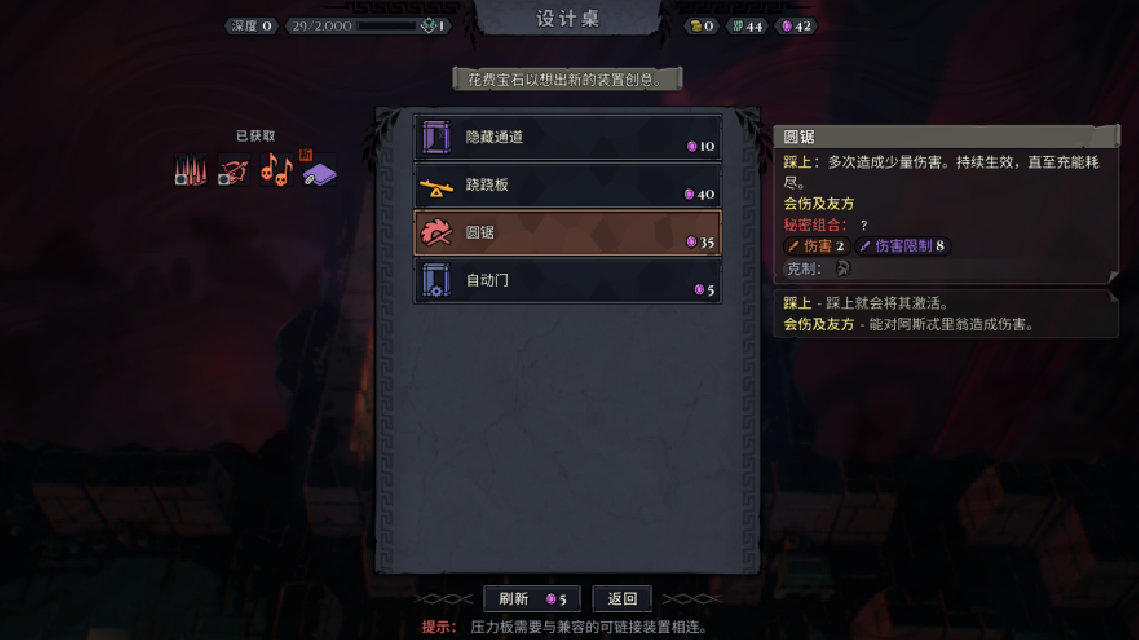 刚上手的时候可能会以为它只是套了点 roguelite 外壳的塔防,但真正玩进去之后会发现,乐趣并不只是放陷阱那么简单,而是在有限空间里不断调整思路,拆墙、封路、改线、算伤害、看敌人行动,再把整张图一步步改造成真正属于自己的杀戮迷宫。那种从混乱到成型的构筑过程,非常容易让人“上瘾”。