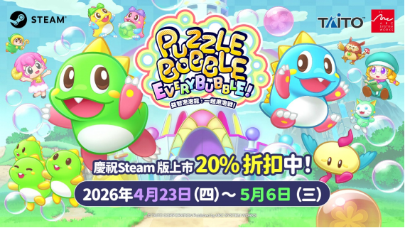 为庆祝《益智泡泡龙:一起泡泡战!》Steam 版上市,自即日(23日)起至 5 月 6 日(三)为止,将于 Steam 平台举办为期 2 周的期间限定 20% 特别折扣活动。
