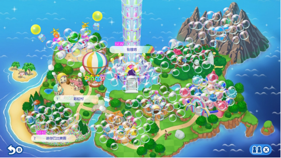 在冒险舞台「彩虹岛」的各个区域中,除了可挑战无尽关卡「骷髅塔」外,还能游玩与《太空侵略者》合作的迷你游戏《益智泡泡龙vs侵略者》。