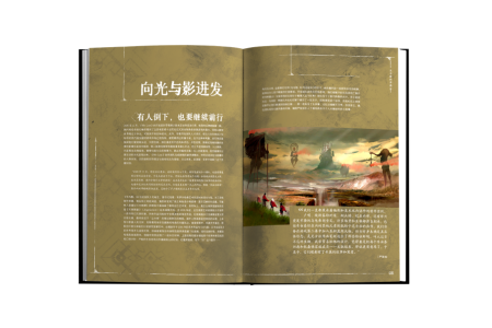 翻阅这本设定集,你总有被Sandfall工作室的灵感和团结触动之时,也会感叹于每一帧游戏场景背后的精妙概念设计。180度平摊的巨幅场景原画一下子又能将你拉入那个游玩时刻,尽享光影视觉盛宴,专色印金工艺更是提高了这本图书的含“金”量!使颜料在画面上流动如“源色”一般。