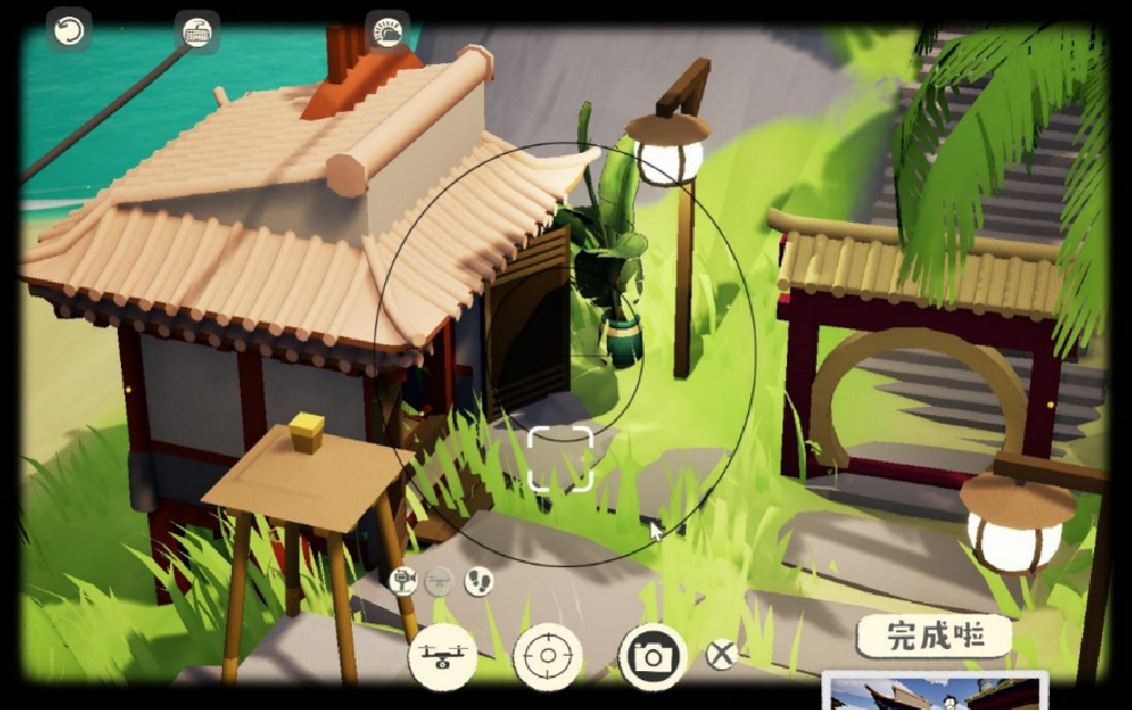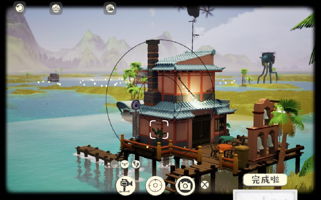 而实际上该文段的翻译非常生硬,真实的大意其实是让你亲手一步步搭建好小岛,并最后拍照纪念。由此也引申出来游戏的两个核心:景观搭建与摄影记录。