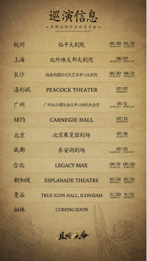 《黑神话:悟空》首次全球巡演音乐会公布日程, 由全球专业音乐团队现场带来知名曲目的震撼体验