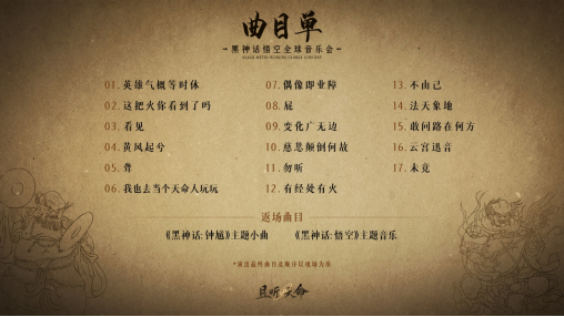 曲目单更新 —— 2026年巡演相比此前的音乐会曲目进行了一定改动,《云宫迅音》和《敢问路在何方》的黑神话改编版将首次加入曲目单。此外,黑神话多首游戏内歌曲的原唱也将加入全球巡演,带来游戏中无二的原唱体验。