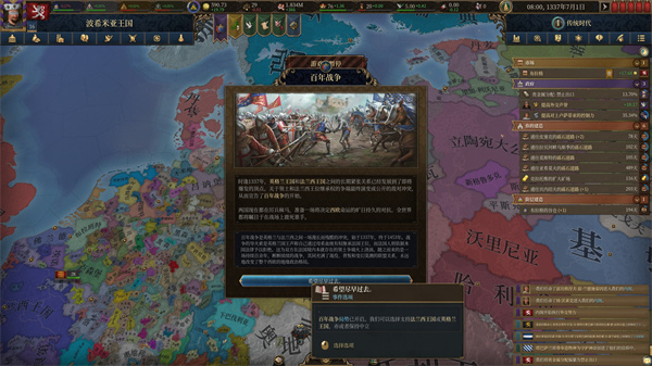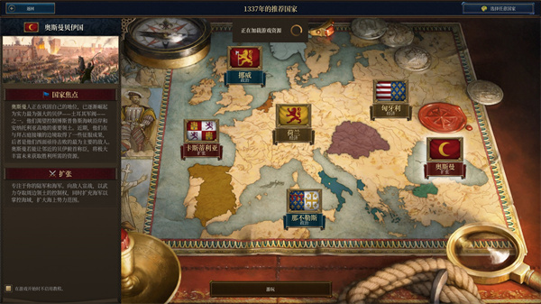在游戏中,玩家将以中世纪晚期为起点,选择一个国家成就自己的伟业,在这里,玩家扮演的不再是单一的领导人或某个将领,而是整个国家意志。