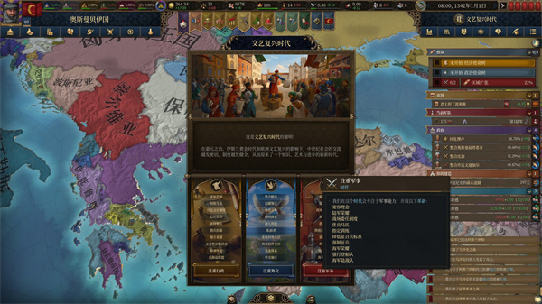 不同于p社“四大名著”里的其他三部:《钢铁雄心》中只有针对战争的重演,《维多利亚》只针对经济的模拟,《十字军之王》中,只专精于复杂的政治体验,作为p社的长子,《欧陆风云》系列一直以来都是集大成者。