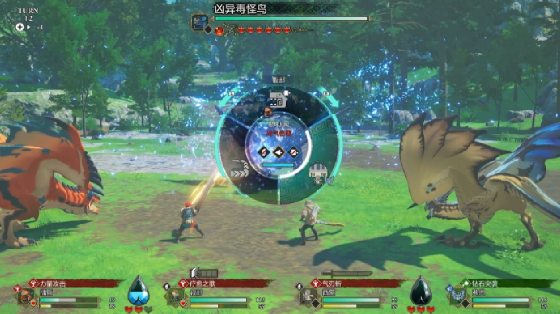 值得强调的是,作为相当现代化的作品,《物语3》充分结合了怪物猎人系列刷取素材的特性,并尽可能的削弱JRPG循环战斗的疲惫感。具有吐息能力的怪物可以直接通过吐息击伤/击败弱小的敌人,在等级碾压的情况下被敌人偷袭也可以“一键扫荡“获取材料,大大削弱了重复刷取的无趣,允许玩家最大限度的把重复工作设置在孵蛋和角色构筑上。