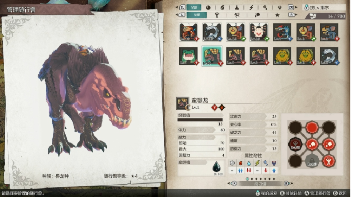 由侵龙和古龙设置的阶段式挑战,则完善了游戏的难度体验。客观上说,由于可收集怪物的模型比技能更加有限,玩家在游戏的中期就可能进入到阶段性的怪物BD之中,但是被支线和探索度“锁死”的科技树分散了玩家的养成目标,本质上延长了本作的“甜品期”长度。