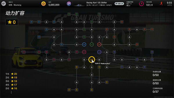 在DLC页面,第一眼映入眼帘的就是一个非常庞大的路线图: 本 DLC 共提供了 50 场历史经典赛事,玩家需要通过不断挑战比赛的方式来推进进度,同时获得不同名次也可以拿到不少奖励,包括六辆独特的限定车辆,高星奖券与现金(货币)奖励。